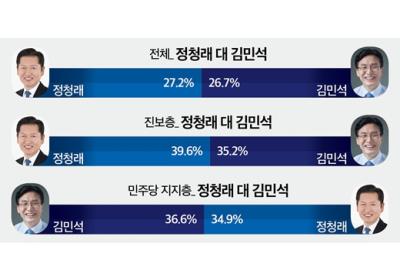 메뉴설정 홈 > 정치 > 정당 (정기여론조사)③민주 차기 당대표 3자대결, 정청래·송영길·김민석 '접전' 2026.02.26 06:00 민주당의 차기 당대표 3자 대결에서 정청래 대표와 송영길 전 대표, 김민석 국무총리의 지지세가 접전을 벌이는 것으로 나타났습니다. 당심으로 평가받는 민주당 지지층과 진보... (정기여론조사)④민주 차기 당대표 양자대결, 정청래 27.2% 대 김민석 26.7% 2026.02.26 06:00 민주당의 차기 당대표로, 정청래 대표와 김민석 국무총리의 양자대결 지지세가 2주 전에 이어 이번주 조사에서도 팽팽하게 맞섰습니다. 다만 2주 전 조사 결과와 비교해 두 사람... (정기여론조사)⑥민주 48.1% 대 국힘 28.1%…격차 '20.0%p' 2026.02.26 06:00 민주당 지지율이 50%에 육박하면서 국민의힘과의 격차가 20%포인트로 크게 확대됐습니다. 다만 집권 여당인 민주당의 지지율이 이재명 대통령의 지지율인 60%대엔 미치지 못했... (정기여론조사)①민주당 당권 경쟁 '안갯속'…이 대통령 지지율 '최고치'(종합) 2026.02.26 06:00 “사형 선고 받았어야, 부당한 판결” 49.9%“무죄 선고 받았어야, 부당한 판결” 24.9%“무기징역 선고는 합당한 판결” 16.2% [정청래 대 김민석 대 송영길]정청래 21.6%송영길 19.4%... 공군 F-16C 전투기 훈련 중 추락…조종사 비상탈출 2026.02.25 21:57 공군 전투기가 25일 야간 비행훈련 중 경북 영주시 인근 산악지역에 추락하는 사고가 발생했습니다. 25일 오후 7시31분께 경북 영주시 안정면 용산리 용수사 방향 야산에 야간 ... 오영훈 제주지사 "선출직 하위 20% 통보 받아…이의 신청할 것" 2026.02.25 21:29 6·3 지방선거에서 재선 도전에 나선 오영훈 제주지사가 25일 "공천관리위원회 면접 심사를 마치고 공항으로 가는 길에 김이수 공천관리위원장으로부터 선출직 하위 20% 통보를... 민주, '법왜곡죄 수정안' 본회의 상정…당내 강경파 '반발' 2026.02.25 21:27 민주당이 법왜곡죄(형법 개정안)를 국회 본회의에 상정하며 '사법개혁 3법'의 처리 절차에 돌입했습니다. 본회의 직전 위헌 논란이 있는 법왜곡죄 조항을 대폭 수정하면서 당내 반발... 경기교육감 '3강 구도'…안민석·임태희·유은혜 '접전' 2026.02.25 20:57 경기도교육감 여론조사에서 안민석 전 민주당 의원과 임태희 경기도교육감, 유은혜 전 사회부총리 겸 교육부 장관이 오차범위 내 접전을 벌이며 '3강 구도'를 형성했습니다. 임... 조광한 "민주당에 찍소리 못하면서 당내서 '소란'"…비당권파 '저격' 2026.02.25 19:00 조광한 국민의힘 최고위원이 "이재명정부와 민주당의 오만한 국회운영에 대해서는 찍소리 한마디 못하면서 당내에서만 소란을 피우고 있다"라며 비당권파를 저격했습니다. 조광... '3차 상법' 끝 아니다…다음은 '주가누르기방지법' 2026.02.25 18:24 '자사주 소각 의무화'를 골자로 하는 '3차 상법 개정안'이 민주당 주도로 국회 문턱을 넘었습니다. 지난해 이재명정부 출범 이후 본격적으로 추진된 '코리아 디스카운트'(한국 증시 저... 장동혁은 '절윤 거부', 송언석은 '사의 표명'…국힘 끝없는 '내홍' 2026.02.25 18:08 국민의힘이 끝없는 내홍으로 총체적 난국에 빠졌습니다. 6·3 지방선거가 불과 100일도 남지 않은 상황에서 '절윤(윤석열 절연)'을 놓고 지도부와 당내 소장파 의원들의 갈등이 계... "대통령 뒷전 된 일 없다"…당·청 '원팀' 부각 2026.02.25 17:30 6·3 지방선거를 3개월여 앞두고 당·정·청이 '엇박자설' 진화에 나섰습니다. 이재명 대통령과 정청래 민주당 대표의 '갈등설'을 수습하고 '원팀'을 부각한 건데요. 이 대통령과 정... 특위 신설에도 공취모 '유지'하자…친명 잇단 '탈퇴'(종합) 2026.02.25 16:58 민주당이 '윤석열정권 조작기소 및 공소취소 국정조사 추진위원회'를 신설했습니다. 앞서 의원들이 만든 '이재명 대통령 사건 공소취소와 국정조사 추진을 위한 의원모임'(공취모)이 ... NSS에서 빠지더니…이번에도 '한반도 언급' 없었다 2026.02.25 15:39 도널드 트럼프 미국 대통령 집권 2기 첫 국정연설에서 한국과 북한에 대한 언급이 전혀 없었습니다. 지난해 12월 발표한 NSS(국가안보전략)에 이어 한반도를 거론하지 않으면서 지... "흑인은 유인원 아냐"…앨 그린, 트럼프 면전서 비판하다 쫓겨났다 2026.02.25 15:11 미국 텍사스주 지역구의 앨 그린 민주당 하원의원이 도널드 트럼프 미국 대통령을 향해 "흑인은 유인원이 아니다(Black people aren‘t apes)"라고 적힌 팻말을 들고 시위했습... '공취모', 당 기구로 확대 개편…계파갈등 논란 의식 2026.02.25 11:54 정청래 민주당 대표가 25일 "방금 전 비공개 최고위원회의에서 윤석열정권하 조작 기소 진상규명 및 공소 취소를 통해서 국정조사를 추진하는 특별위원회를 만들어서 의결했다"고... 이 대통령 "뒷전 된 적 없어"…당·청 엇박자 '반박' 2026.02.25 08:41 이재명 대통령이 25일 당·청 엇박자설에 직접 "뒷전이 된 적 없다"며 반박하고 나섰습니다. 이 대통령은 이날 오전 X(엑스·옛 트위터)에 "과도한 걱정을 기우라고 한다"며 청와대...  AI 영상 6개 중 5개 '사용 불가'…시대에 뒤처진 선거법 2026.02.25 06:00 선거판도 AI(인공지능) 전성시대입니다. 지난 20대 대선에 'AI 후보'의 등장 이후 선거 홍보 방식에 새바람이 불었는데요. 법망은 오히려 퇴보