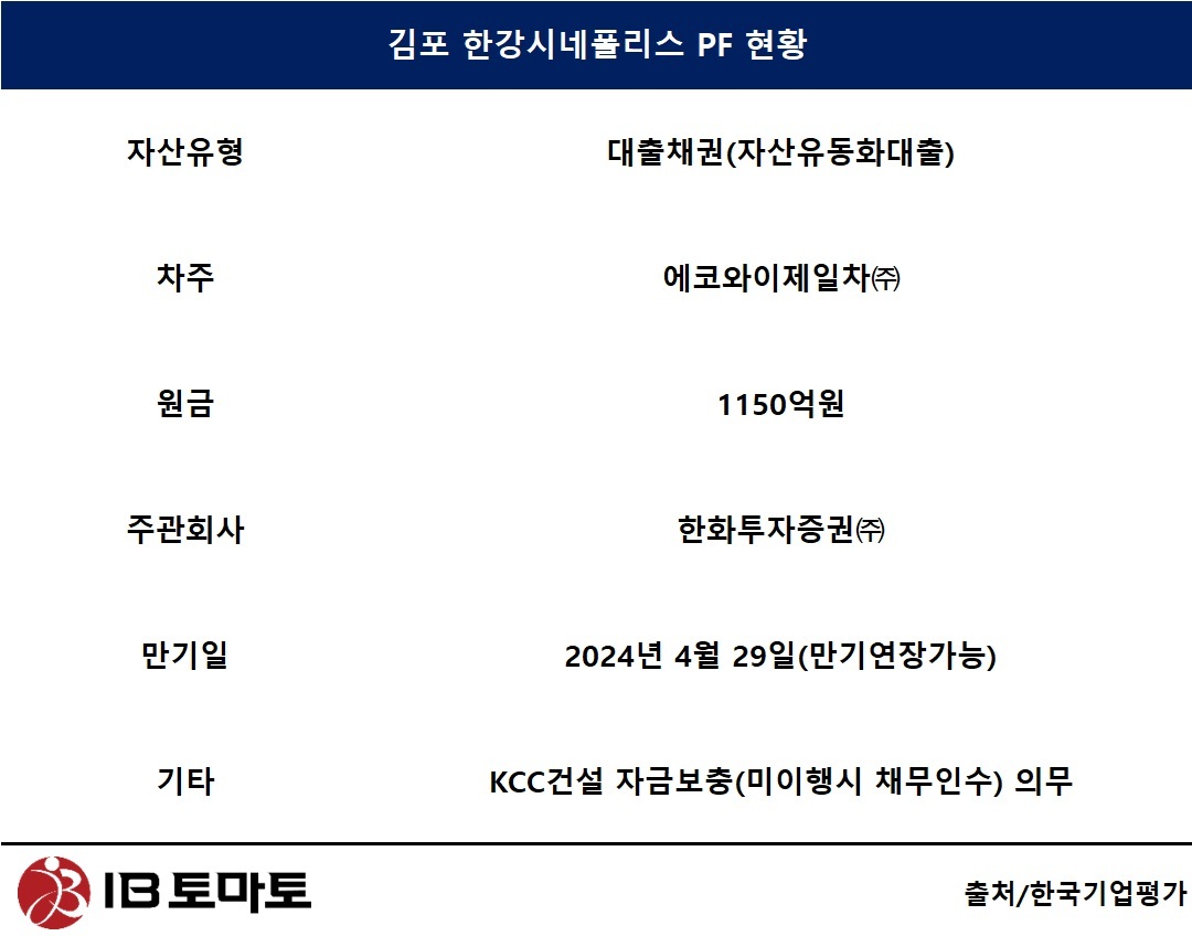 [IB토마토 김소윤 기자] 김포 한강시네폴리스 도시개발사업이 최근 PF(프로젝트 파이낸싱) 리파이낸싱을 거치며 다시 주목받고 있다. 산업단지 부지조성과 단지 내 대규모 주거시설 시공을 맡은 KCC건설이 공정을 이어가는 가운데, 시행사는 만기가 도래한 PF 대출을 연장하며 사업 일정에 맞춰 자금 구조를 정비했다. 업계에서는 장기간 지연됐던 이 사업이 기존 신용보강 구조를 유지한 채 실제 공정을 중심으로 '완주 국면'을 모색하고 있다는 평가를 내놓고 있다.