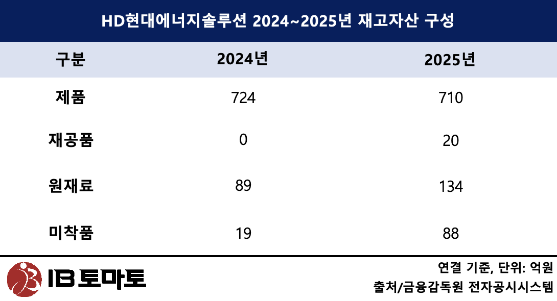 이에 대해 HD현대에너지솔루션 관계자는 <IB토마토>와의 통화에서 "이번 재고자산 증가는 단순 완제품 재고의 누적이 아닌, 셀(Cell) 공장 가동과 대내외 변화에 대비한 원재료 및 부품의 선제적 확보에 기인한 것"이라고 말했다.