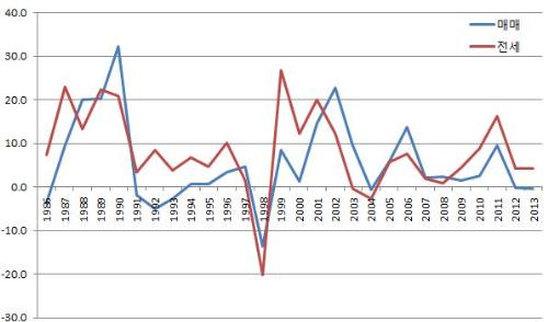 국내 부동산 관련 통계가 정착된 이후 우리나라에는 3번의 전세대란이 있었습니다. 1980년대 중반, 2000년 전후, 그리고 지금.