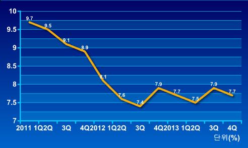 연간 경제 성장률은 정부가 제시한 목표치 7.5%는 웃돌았지만 지난 1999년 이후 14년 만에 가장 낮은 수준이다.