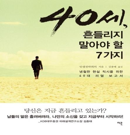 40대는 그 어떤 때보다 어려운 상황 탓에 흔들릴 수 있지만, 흔들리면 곤란해질 수 있다. 책은 ▲일 ▲돈 ▲집 ▲건강 ▲소통 ▲가정 ▲부모와 노후 등 7가지 주제를 67개 다양한 이야기로 나눠 컨설팅을 시도한다.