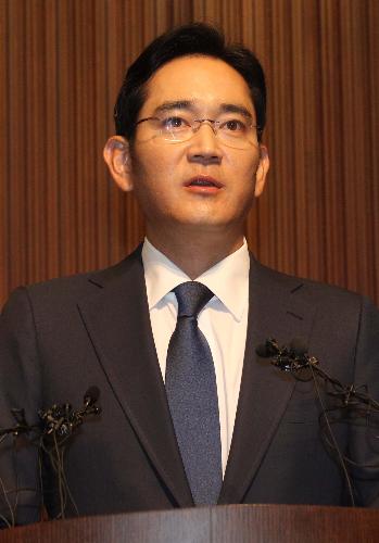 ◇이재용 삼성전자 부회장이 지난달 23일 서울 서초구 삼성전자 다목적홀에서 메르스(MERS·중동호흡기증후군) 사태와 관련 대국민사과 기자회견을 하고 있다. 사진/뉴시스