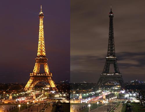 ◇프랑스 파리에 있는 에펠탑이 지난 3월 '어스 아워(Earth Hour)'에 참여한 전후의 모습. 어스아워는 전 세계 개인, 사업장, 도시, 주요 건물이 지구온난화에 대한 의식을 고양하기 위해 1시간 동안 전등을 끄는 행사다. (사진=뉴시스/AP)