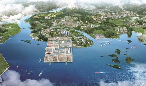 ◇정부가 경남 하동군 갈사만에 조성할 조선산업단지 조감도. 갈사만 조선산업단지는 하동군 금남면 갈사리와 가덕리 일원 해면부 317만4000㎡와 육지부 243만9000㎡ 등 561만3000㎡의 부지에 조성될 계획이다. 사진/뉴시스