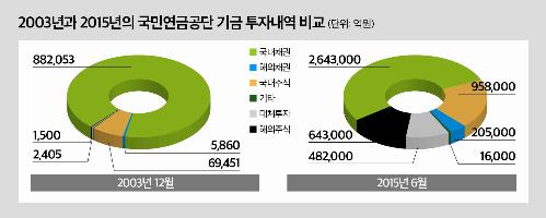 ◇2003년과 2015년의 국민연금공단 기금운용 내역 비교. 자료/뉴스토마토