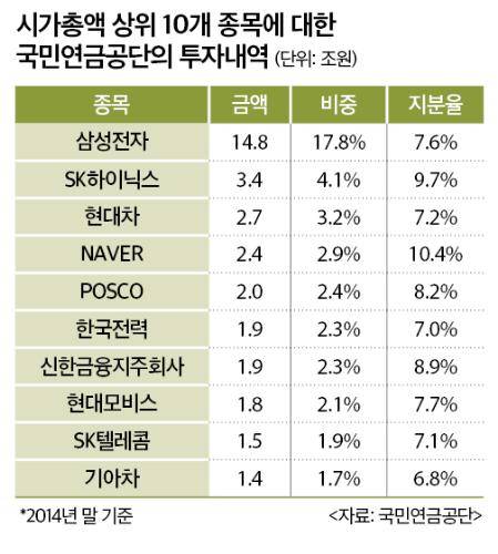 국민연금의 주식투자 비중 확대 역시 여러 한계를 노출하고 있다. 무엇보다 투자가 대형주 중심으로 이뤄지는 데다, 배당 확대 등 주주친화적 정책 요구에는 목소리가 미약하다는 지적이다. 전직 국민연금 관계자는 "국민연금은 삼성전자와 현대차 등 코스피 대형주에 올인하고 있다"고 말했다.