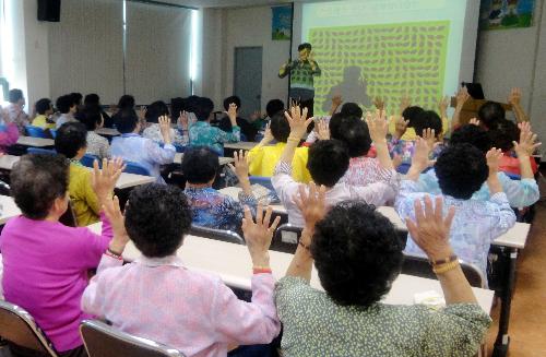 함평군보건소가 60세 이상 어르신 50명을 대상으로 치매예방교실 '백설기(백세청춘 설레는 기억청춘)'를 진행하고 있다.사진/뉴시스