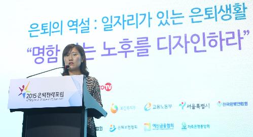 18일 서울 여의도 글래드호텔에서 열린 '2015은퇴전략포럼'에서 강은나 한국보건사회연구원 저출산고령사회기획단 부연구위원이 '대한민국 노인 경제활동 특성과 정책과제'란 주제로 강연을 진행했다.