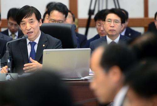 기정사실화된 미국의 연내 기준금리 인상에 따른 국내 기준금리 수준과 가계부채 부담 가중에 대한 우려도 곳곳에서 나왔다. 이 총재는 "(미국이 연내에 기준금리를) 인상할 가능성이 높다고 본다"고 답변했다.