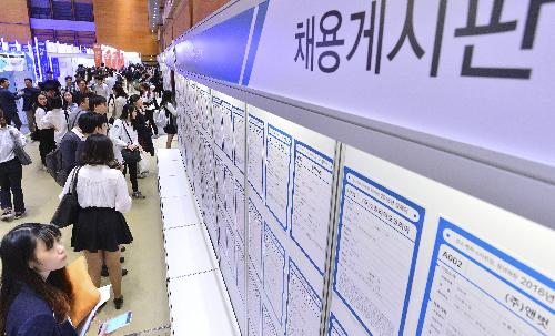 지난 6일 서울 강남구 코엑스에서 열린 '강소·벤처·스타트업·청년매칭 잡페어'에서 구직자들이 취업게시판을 보고 있다. 사진/뉴스1