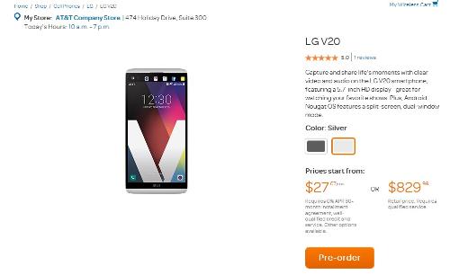 미국에서 예약판매에 돌입한 LG V20.사진/AT&T 홈페이지 캡쳐