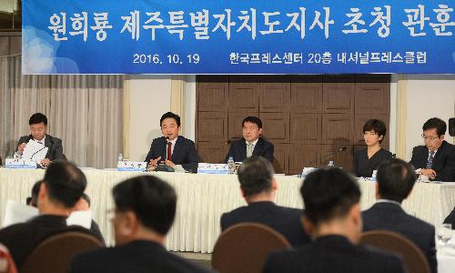 원희룡 제주도지사가 19일 서울 중구 프레스센터에서 열린 관훈토론회에서 발언을 하고 있다. 사진/뉴시스