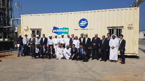 두산중공업이 사우디아라비아 해수담수화청 산하 연구소 DTRI와 공동연구를 위한 실증설비 가동식을 가졌다. 사진/두산중공업