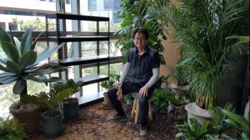윤준 한국고유식물연구소 대표가 작업 도중 앉아있는 모습이다. 사진/한고연