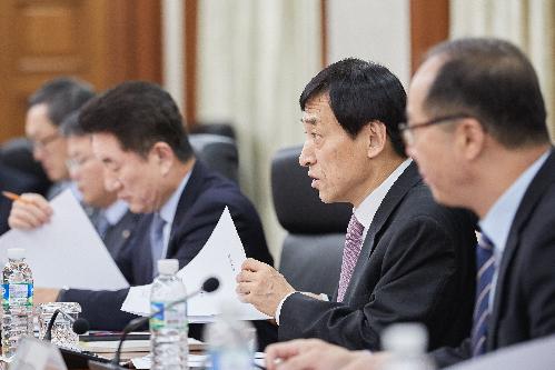 부총재, 부총재보와 함께 외자운용원장, 경제연구원장, 정책보좌관, 조사국장, 국제국장, 통화정책국장, 금융안정국장, 금융시장국장, 공보관 등이 회의에 참석했다.