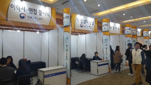 각 사별 부스가 나열된 전시장 한켠에는 면접과 상담에 참여한 응시자들에게 도움이 될 만한 취업지원관 부스도 차려졌다. 이력서·면접 클리닉, 이력서 사진촬영, 직업심리상담 등 실질적으로 도움이 되는 코너가 있는가 하면 취업타로와 메이크업 등 면접을 앞둔 응시자들의 긴장감 해소에 도움이 될만한 부스들도 마련됐다.
