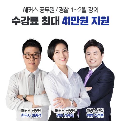 해커스 공무원학원은 2017년 9급/7급/경찰 공무원시험을 준비하는 수험생을 대상으로 ‘2017년 1~2월 강의 조기등록 이벤트’를 진행 중이다. 수험생들은 오늘(5일, 월)까지 2017년 1~2월 강의 등록 시에는 수강료를 최대 41만 원까지 지원 받아 합리적인 가격으로 수강할 수 있다.