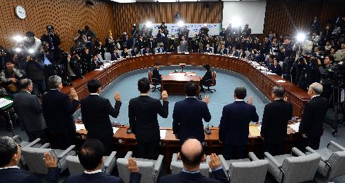 [뉴스토마토 최용민기자] 6일 국회에 출석한 대기업 총수들은 대부분 무표정한 모습이었다. 마치 자신이 이곳에 왜 불려왔는지 여전히 의구심을 갖는 눈치였다. 대기실부터 일렬로 들어온 대기업 총수들은 청문회장에 들어오자 각자 자신의 이름이 적혀 있는 자리를 찾아 앉았다. 그리고 이내 무거운 침묵이 흘렀다. 김성태 위원장이 개의 선언을 하기 전까지 총수들은 3분여간 부동자세를 유지했다.