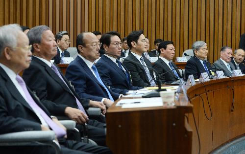 [뉴스토마토 이재영기자] 국정조사 하이라이트인 청문회의 소득은 없었다. 사상 최초로 재벌 총수들이 대거 출석, 뇌물 혐의 등 정경유착 진상규명에 국민적 관심이 집중됐으나 무엇 하나 입증되지 못했다. 총수들은 미르·K스포츠재단 출연의 대가성을 모두 부인했다. 일부는 강제성을 시인했으나 대통령과 독대 당시 그런 대화는 없었다고 했다. 게이트와 얽힌 다른 의혹들에 대해서도 사과는 있었지만 "기억이 안 난다" 거나 "관여하지 않았다"며 법적 책임을 피해갔다. 정경유착 고리를 끊겠다는 약속도 모호했다. 정권의 모금 창구 역할을 한 전국경제인연합회 해체 요구에 대해서는 대부분이 공감했다.