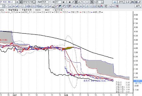 8일 행사가격 260 콜옵션 12월물은 결제지수인 코스피200이 마감동시호가에만 1.6포인트 이상 급등한 덕분에 전날 종가대비 67배 폭등하며 12월을 마감했다. 콜 260은 개장가대비로도 13배 이상 폭등했다.
