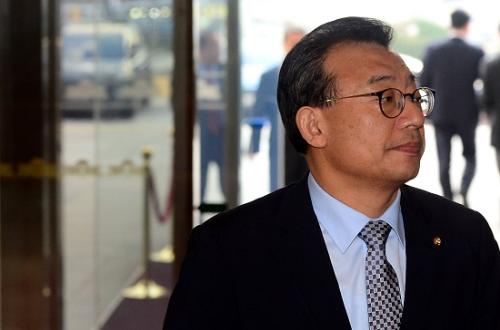 새누리당 이정현 대표가 9일 오전 국회에서 열린 의원총회에 참석하고 있다. 사진/뉴시스