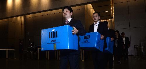 검찰이 박근혜정부의 비선실세 최순실씨 의혹과 관련해 11월8일 오후 서울 삼성전자 서초사옥 압수수색을 마치고 압수품을 들고 차량으로 향하고 있다. 사진/뉴시스