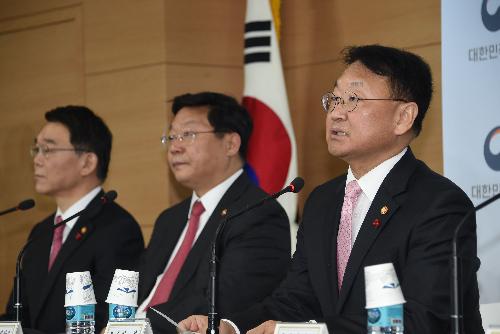 작년 12월29일 광화문 정부서울청사에서 열린 '2017년 경제정책방향 관계부처 합동브리핑'에서 유일호 부총리가 발표문을 낭독하고 있다. 사진/기획재정부