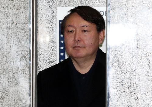 '박근혜-최순실' 게이트 특별검사팀의 윤석열 특검 수사팀장이 주말 휴일인 8일 오후 서울 강남구 대치동 특검 사무실로 출근하고 있다. 사진/뉴시스