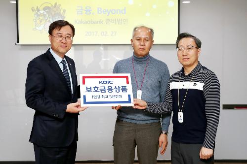 법인)를 방문하여, 이용우(왼쪽 두번째)?윤호영(왼쪽 세번째) 카카오뱅크 공동대표에게 예금보호대상 금융
