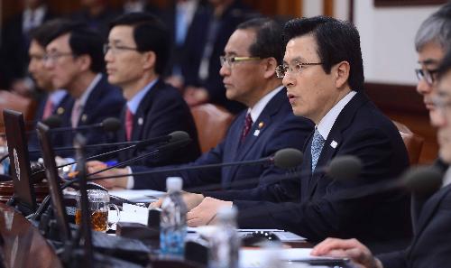 황교안 대통령 권한대행 국무총리가 15일 서울 종로구 정부서울청사에서 열린 임시 국무회의를 주재하고 있다. 사진/뉴시스