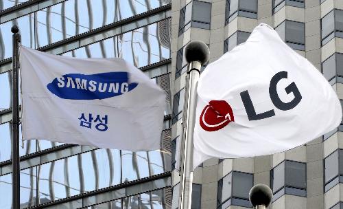 삼성전자 깃발(왼쪽)과 LG전자 깃발.사진/뉴시스