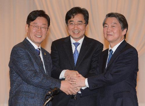 [뉴스토마토 최병호기자] 더불어민주당 대선후보 경선에 나선 이재명 성남시장과 국민의당 대선주자인 안철수 전 대표가 "공정사회를 만들자"고 한 목소리를 냈다. 이들은 "둘이 본선에서 같이 경쟁하면 그것이야말로 미래를 위한 경쟁"이 될 것라며 화기애애한 분위기를 연출했다.