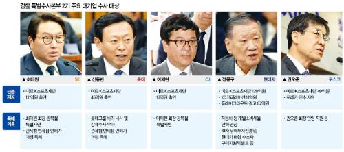특수본 수사 대상에 오른 SK, 롯데, CJ, 현대, 포스코 등은 2015년 7월24일 박근혜 대통령이 주관한 17대 기업 총수들 공식 오찬 직후 각각 박 대통령과 독대를 한 기업들이다. 기업 총수들은 독대 기회에 기업의 현안을 메모해 박 대통령에게 민원을 제기한 것으로 특검팀 조사결과 드러났다.