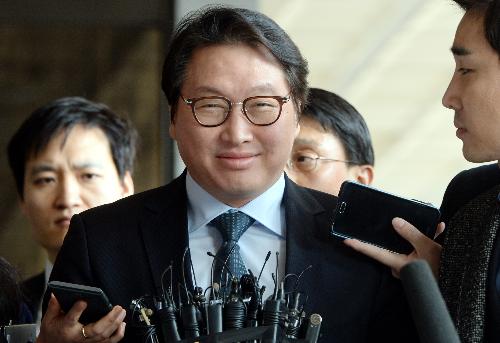 이날 오후 1시58분쯤 서울중앙지검 청사에 도착한 최 회장은 '미르·K스포츠재단 출연 대가로 사면을 청탁했느냐'는 취재진의 질문에 미소를 보였을 뿐 아무런 대답도 하지 않았다. 또 사면을 받을 것을 미리 알고 있었는지, 박 전 대통령과 독대하면서 면세점 인허가와 관련해 부탁했는지 등 질문이 이어졌지만 역시 입을 굳게 다물고 서둘러 조사실로 들어갔다.