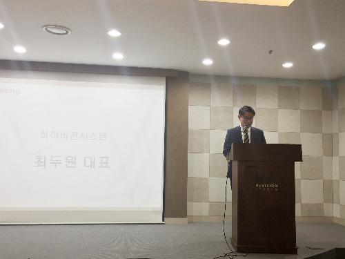 최두원 하이비전시스템 대표는 29일 ‘2017 큐비콘 테크 데이’에 신제품 발표와 함께 올해 목표를 밝혔다. 사진/신항섭 기자