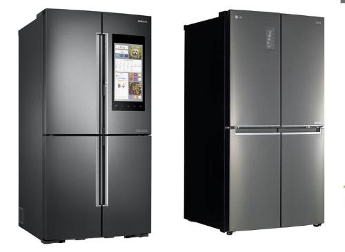 딥러닝 기술이 적용된 삼성 냉장고 '셰프컬렉션 패밀리허브'(왼쪽)와 LG 디오스 냉장고.사진/각사