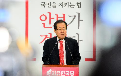 홍준표 경남도지사가 30일 오전 서울 영등포구 여의도 자유한국당 당사에서 진행된 식수관련 대선공약 발표 기자회견을 하고 있다. 사진/뉴시스