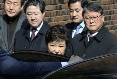박근혜 전 대통령이 30일 영장실질심사를 받기 위해 서울 삼성동 자택에서 법원으로 출발하고 있다. 사진/뉴시스