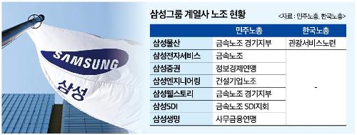 회사와 단체협약을 체결한 노조는 관광서비스노련의 에버랜드노조(현 삼성물산)가 유일하다. 강성의 민주노총 소속 노조들은 회사와 교섭조차 못하고 있다. 삼성전자서비스지회의 단체협약은 협력업체 사용자들과 체결됐다. 원청인 삼성전자서비스와 교섭할 수 없어 한계가 있다. 삼성엔지니어링지부는 노조 간부조차 신분을 숨긴 채 활동한다. 협소한 조합원 수도 한계로 지목된다. 조합원을 늘리기 위해 나름 홍보를 하지만 직원들이 노조 활동을 극도로 꺼려 성과가 없다. 김호신 에버랜드노조위원장은 "수년째 노조 활동을 하지만 직원들이 노조에 가입하는 걸 꺼려 조합원수가 늘지 않았다"고 말했다.