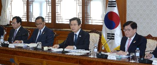 황교안 대통령 권한대행 국무총리가 13일 오후 서울 종로구 정부서울청사 대회의실에서 AI·구제역 관계 장관회의를 주재하고 있다.사진/뉴시스