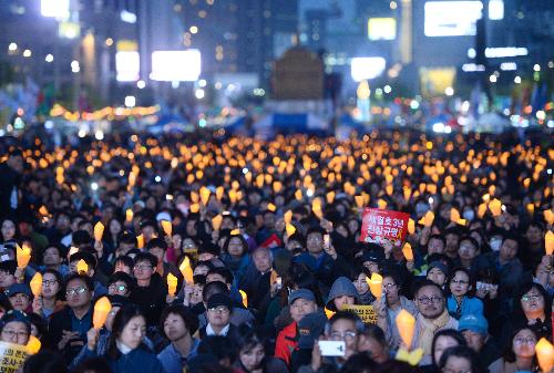 박진 퇴진행동 상황실장의 사회로 진행된 본 행사의 문은 박원순 서울시장이 열었다. 무대에 선 박 시장이 “어둠은 빛을 이길 수 없다. 거짓은 참을 이길 수 없다. 진실은 침몰하지 않는다. 우리는 포기하지 않는다. 그래서 우리가 이겼다”고 입을 열자 시민들은 환호했다. 하지만 박 시장의 발언이 이어지면서 집회는 엄숙하고 숙연해졌다. 박 시장은 “꽃의 계절은 돌아왔는데 개나리, 진달래, 벚꽃, 목련이 피었다가 지는데 아이들이, 아이들이 우리들 곁에 없다”며 “아이들이, 당신들이 돌아오지 않았는데 우리만 예쁜 꽃을 보아도 되는지, 우리만 따뜻한 바람만 마주해도 되는 것인지 자꾸 고개를 숙인다”고 말했다.