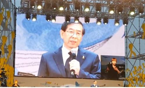 이어 박 시장은 미수습자 아홉명의 이름을 한명씩 소리 높여 부르면서 “제발 이제 그만 우리 곁으로 돌아와 다오. 이제 그만 긴 여행에서 돌아와 우리 함께 같이 집으로 가자”며 “다시는 당신들을 잃지 않겠다. 미궁에 빠져있는 그날의 진실을 반드시 밝혀내겠다”고 다짐했다. 박 시장의 말이 이어지는 동안 광장 여기저기에서는 시민들의 흐느낌이 들렸다.
