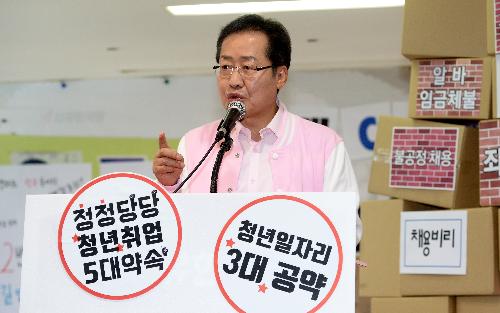 [뉴스토마토 최용민 기자] 자유한국당 홍준표 후보가 16일 청년 일자리 창출을 위해 ‘3대 공약’과 ‘5대 약속’을 발표하고 청년 표심 잡기에 나섰다. 그러나 홍 후보가 내놓은 청년 일자리 정책은 대부분 규제에 방점이 찍혀 있어 실질적으로 새로운 일자리가 늘어날 수 있을지 의문이 들고 있다.