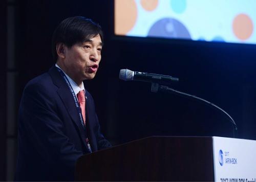 이주열 한국은행 총재가 지난달 26일 서울 중구 웨스틴조선호텔에서 한은과 국제 소득 및 부 연구학회(IARIW) 공동 주최로 열린 국제 콘퍼런스에서 개회사를 하고 있다.