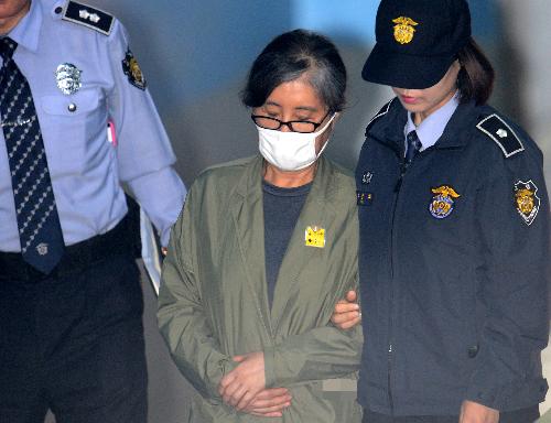 '비선실세' 최순실씨가 지난 10일 오전 서울 서초구 서울중앙지법에서 열린 공판에 출석하기 위해 호송차에서 내려 법정으로 향하고 있다. 사진/뉴시스