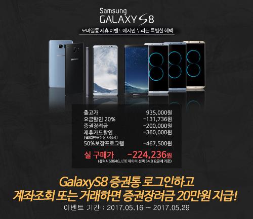 한편, 삼성전자 갤럭시S8를 시중가보다 싸게 구매할 수 있는 증권사 이벤트가 있어 화제가 되고 있다.