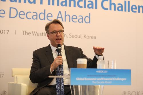 존 윌리엄스 미국 샌프란시스코 연방준비은행 총재가 1일 서울 웨스틴조선호텔에서 한국은행 주최로 열린 '2017년 BOK 국제컨퍼런스'에 참석해 기자간담회를 진행하고 있다. 사진/한국은행