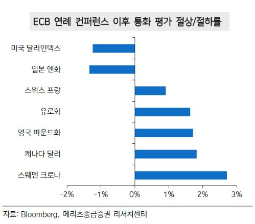 ECB 연례 컨퍼런스 이후 통화 평가 절상·절하률. 자료/메리츠종금증권