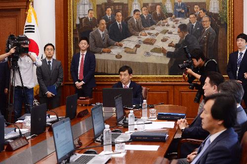 이주열 한국은행 총재 등이 지난 5월 25일 오전 서울 중구 한국은행에서 열린 금융통화위원회에 참석해 회의 시작을 기다리고 있다. 사진/뉴시스